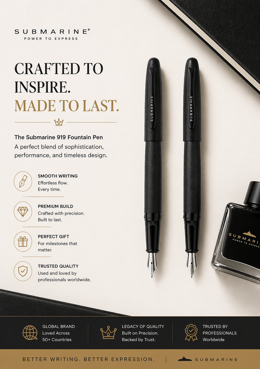 Submarine, a leading manufacturer of high quality writing instruments, brings you the power to express your thoughts, ideas, feelings and visions.