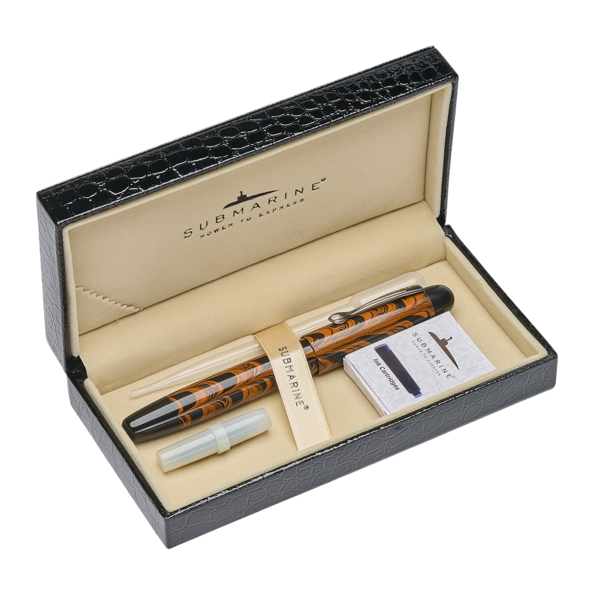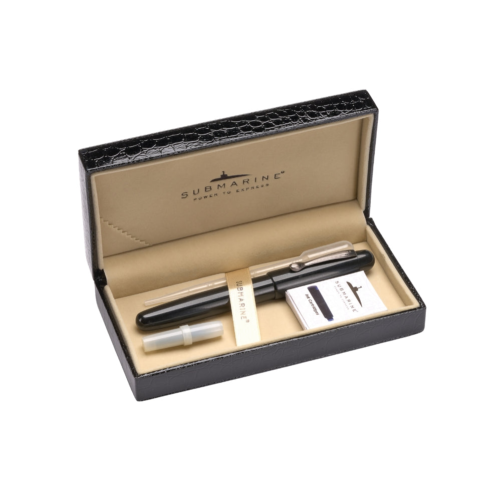 Packing:- submarine offering crocodile finish black box with complementary cartridges, one converter & one Dropper