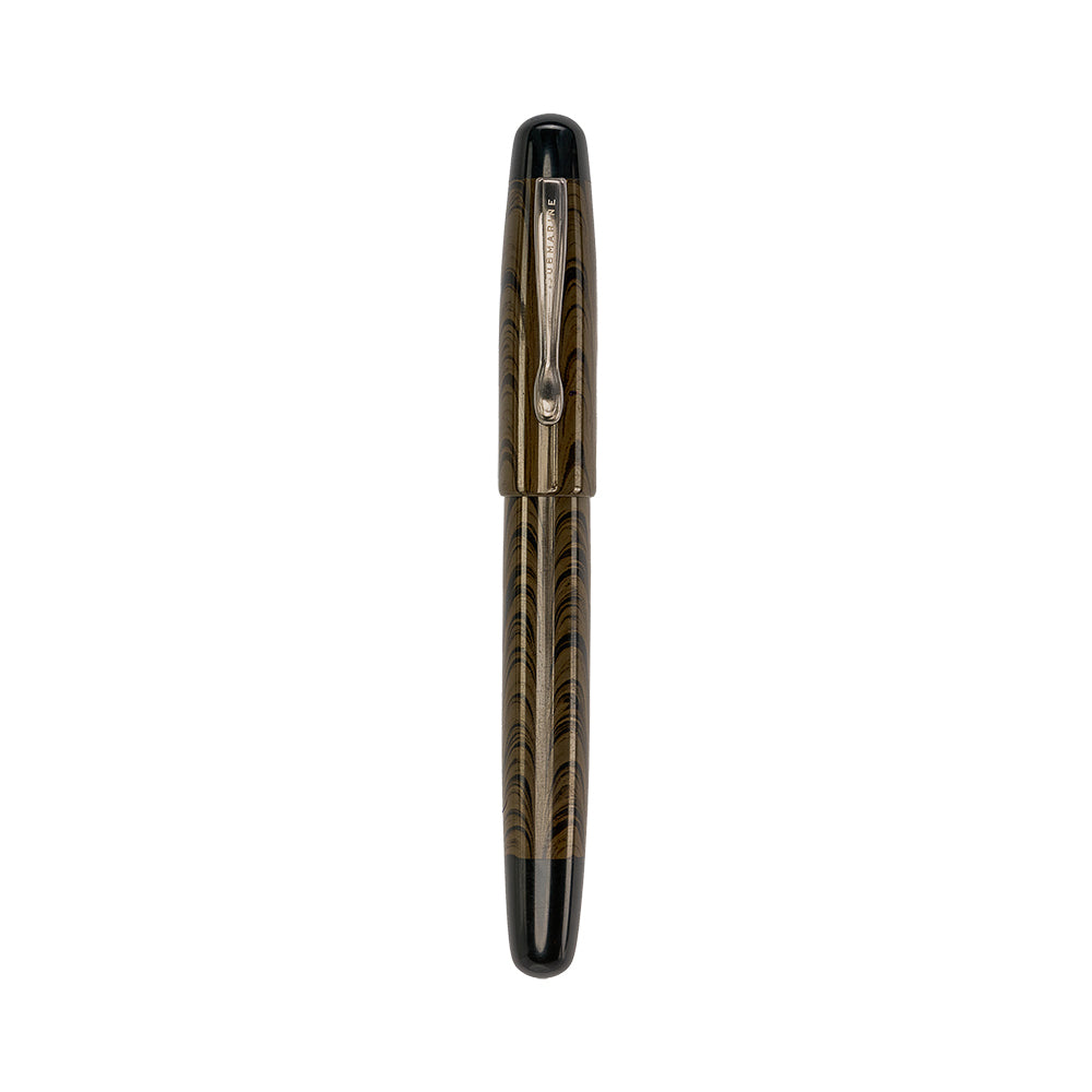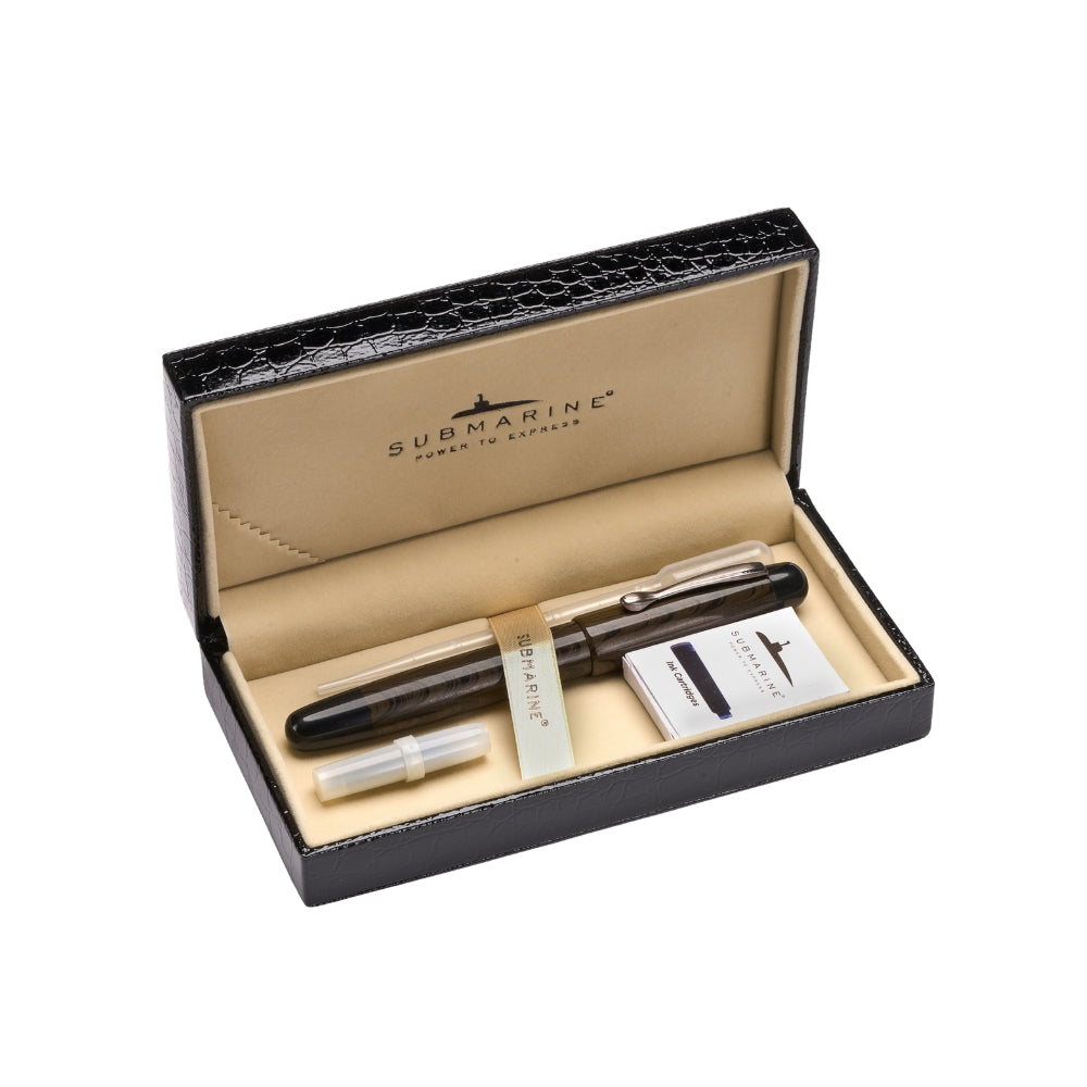 Pen Material:- Ebonite body with marble brown finish with graphite grey clip.